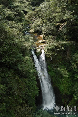 參觀(guān)完兩處紅色旅游景點(diǎn)之后,記者們順道觀(guān)光了龍?zhí)讹L(fēng)景區(qū)。龍?zhí)段挥诖钠何鞅逼吖,是近年?lái)開(kāi)發(fā)的以自然與人文景觀(guān)相結(jié)合的旅游風(fēng)景區(qū)。據(jù)介紹,當(dāng)?shù)氐奈迳窈邮驱執(zhí)丁拔逄妒似佟钡脑慈。溪水沖擊小井峽谷后,陡然跌落絕壁之下,又連續(xù)飛下四級(jí)斷崖,形成梯狀的五個(gè)氣勢(shì)磅礴的瀑布和深潭,這就是碧玉、金鎖、珍珠、飛鳳、玉女等五潭五瀑。細(xì)察五潭,碧水泱泱,樹(shù)影幢幢,崖壁如刀削斧鑿,崖腳怪石,汀芷競(jìng)秀,綠蔭覆蓋四周。仰觀(guān)五瀑,潭潭無(wú)俗水,瀑瀑似神女。