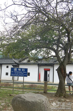 舊居坐落在大井村中央,因墻壁為白色,慣稱(chēng)它為"白屋"。這棟房子共有44間,五個(gè)天井,面積近千平方米。毛澤東率領(lǐng)工農(nóng)紅軍首次到達(dá)大井時(shí)就住在這里,此后便成為毛澤東在大井的住地。1929年1月底,這棟房子被敵人燒毀,僅剩下一堵殘墻、屋后的兩棵樹(shù)和房前草坪上的一塊大石頭。1960年,當(dāng)?shù)卣丛残迯?fù),將殘墻嵌入新墻之中作為紀(jì)念。屋前的有塊大石頭因毛澤東時(shí)常坐在上面看書(shū)讀報(bào)、批閱文件,被人稱(chēng)為“讀書(shū)石”。