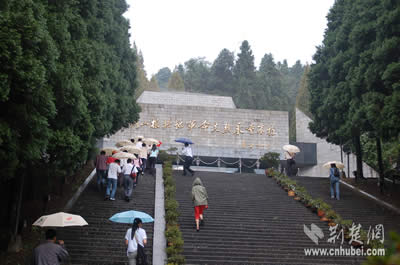 進(jìn)門(mén)后,展現(xiàn)在人們眼前的是109級(jí)臺(tái)階,威嚴(yán)肅穆的紀(jì)念堂就矗立在山頂上。導(dǎo)游小姐告訴記者,這些臺(tái)階分為兩組,第一組49級(jí),象征1949年新中國(guó)成立。第二組60級(jí),寓意陵園是在井岡山革命根據(jù)地創(chuàng)建六十周年的1987年建成。
