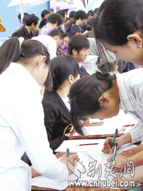 昨日9時(shí),本次活動(dòng)周的主會(huì)場(chǎng)———黃岡高級(jí)技工學(xué)校內(nèi)人潮涌動(dòng),來自湖北省駐外勞務(wù)機(jī)構(gòu)、省內(nèi)大型企業(yè)、民營企業(yè)以及武漢、黃石、鄂州、仙桃等地的150多家用人單位進(jìn)場(chǎng)招聘,提供就業(yè)崗位1.5萬個(gè),進(jìn)場(chǎng)求職人員達(dá)2萬人。