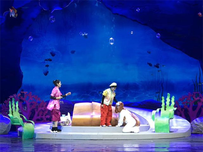 《浮出水面》講述了未來人類因一次地震而沉入海底生活,小男孩“歡歡”一家在未來世界認(rèn)識到環(huán)境污染的嚴(yán)重,在中華鱘“奔奔”的指引下浮出水面,最后重回陸地建設(shè)家園的故事,劇情將大量音樂舞蹈與科學(xué)知識結(jié)合,涵蓋垃圾分類、人體急救、阿基米德原理、火箭噴射等多種科學(xué)知識。整場演出亮點紛呈。