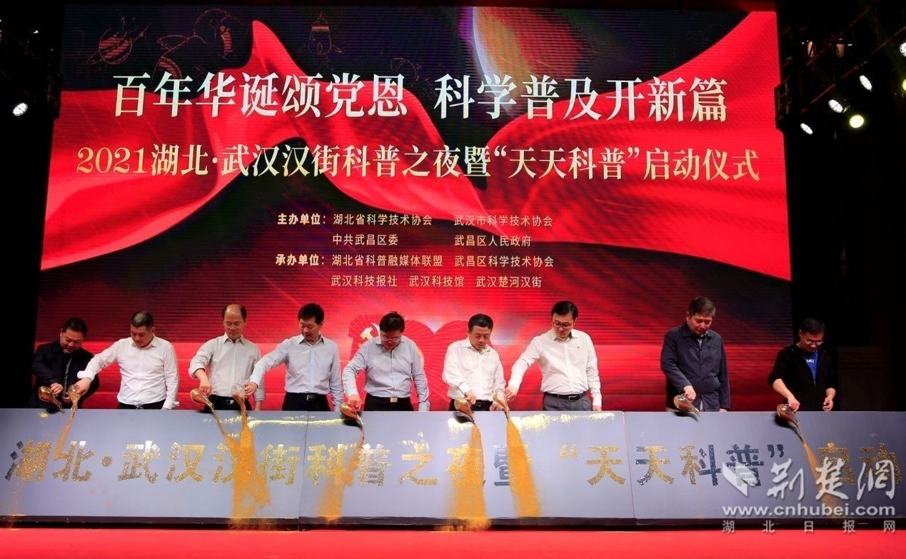隨后,馬忠星宣布2021湖北?武漢漢街科普之夜暨“天天科普”啟動,并邀請參加活動的嘉賓共同點(diǎn)亮鎏金沙臺。