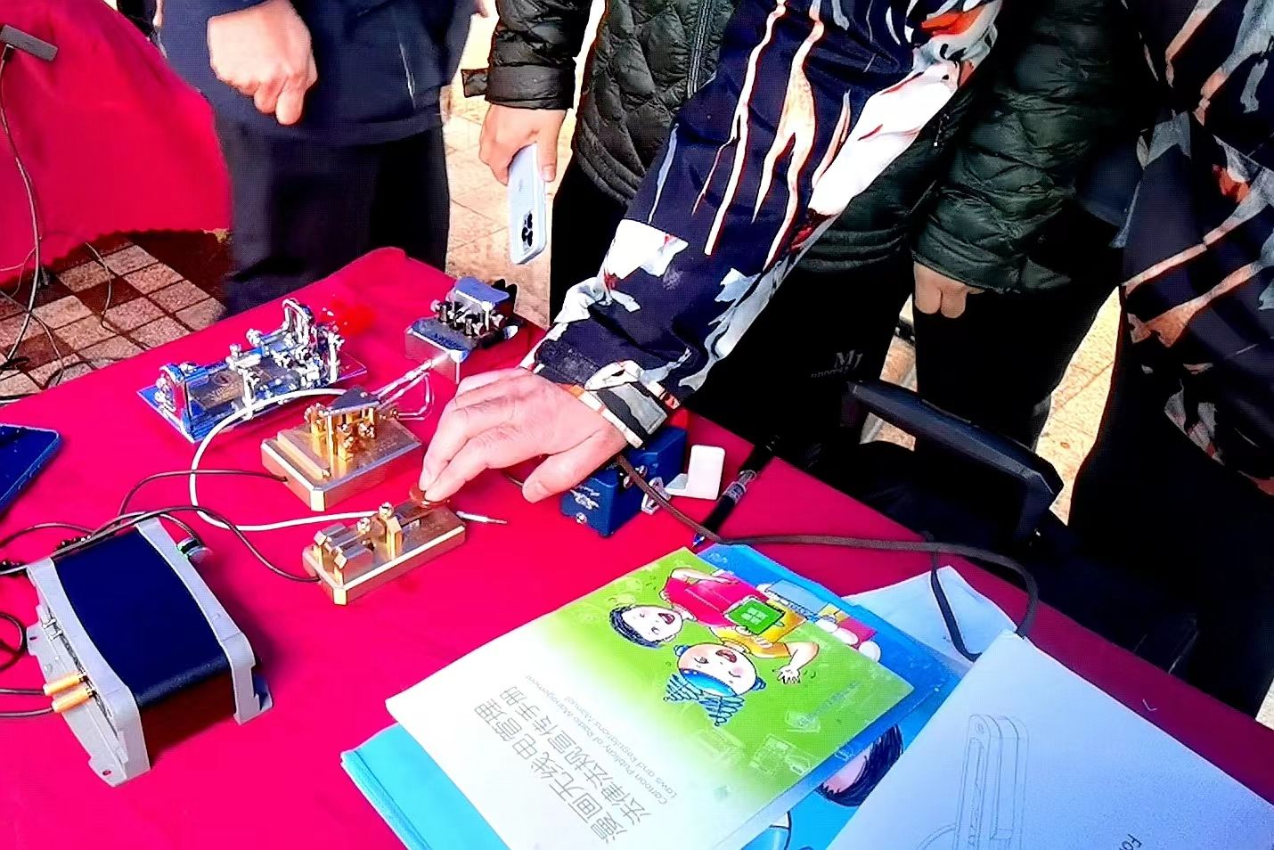 當(dāng)天,10多名武漢“火腿”(業(yè)余無線電愛好者)冒雨來參加宣傳活動(dòng),在現(xiàn)場(chǎng)架設(shè)短波、超短波設(shè)施,組裝調(diào)試電臺(tái),向市民展示各自鐘愛的無線電設(shè)備、QSL卡片(通聯(lián)確認(rèn)卡)、電臺(tái)設(shè)備、自制天線、比賽證書等,相互交流無線電通聯(lián)經(jīng)驗(yàn)。