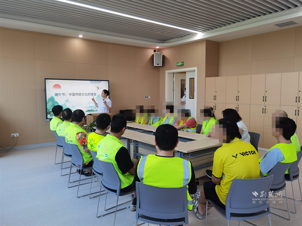 “釣粽子”比賽將現(xiàn)場(chǎng)氣氛推向高潮?;颊邆冞\(yùn)用特制魚(yú)竿,將細(xì)繩懸掛的魚(yú)鉤對(duì)準(zhǔn)桌上的粽子和咸蛋,現(xiàn)場(chǎng)笑聲此起彼伏?!搬灥臅r(shí)候要穩(wěn),就像慢慢解開(kāi)心里的結(jié)。”患者小芳不禁發(fā)出感概。
