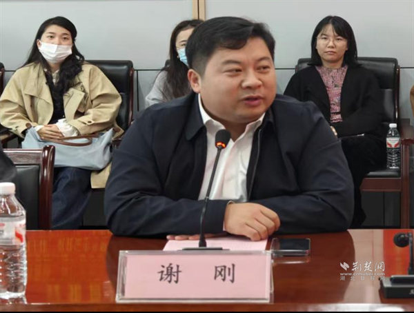 武漢鐵路職業(yè)技術(shù)學院黨委學工部部長謝剛介紹來訪團隊情況。 通訊員供圖