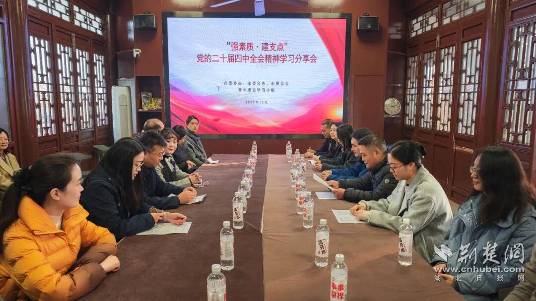 荊楚網(wǎng)(湖北日報網(wǎng))訊(通訊員 史金鐘)冬日的龜山層林浸染,楚風漢韻縈繞書香。12月11日下午,來自武漢市委外辦、市委臺辦、市貿(mào)促會的青年理論學習小組在龜山楚才韜奮書院聯(lián)合舉辦“強素質(zhì)·建支點”讀書活動暨黨的二十屆四中全會精神學習分享會。30余名青年干部通過實地調(diào)研、思想碰撞,深學細悟全會精神,凝聚服務(wù)“五個中心”建設(shè)的青春合力。
