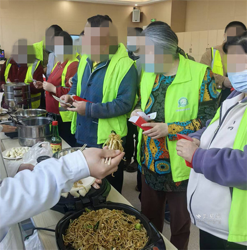 園藝治療師胡露蕓為康復(fù)患者發(fā)放新春紅包,紅包內(nèi)的康復(fù)代幣,是對患者一年來康復(fù)努力的肯定。代幣美食街同步開市,現(xiàn)場設(shè)置餃子、炒面、烤糍粑、烤腸及飲品等攤位,醫(yī)護人員協(xié)助完成食物制作與分裝,康復(fù)患者持代幣有序兌換美食,在互動過程中鍛煉社交表達與自主決策能力。
