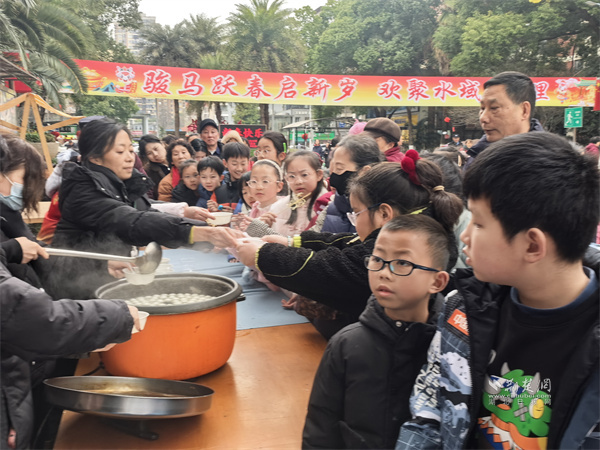 “民俗雅趣”區(qū)域里,激昂的舞龍表演率先拉開序幕,為新春送上風調(diào)雨順的美好寓意。數(shù)百條燈謎懸掛現(xiàn)場,涵蓋成語典故、詩詞歌賦、生活常識等內(nèi)容,居民競猜解謎,贏取精美小禮;現(xiàn)場煮制的元宵熱氣騰騰,工作人員逐一分發(fā),一碗甜糯元宵暖胃又暖心。特邀的糖人師傅現(xiàn)場展藝,糖稀經(jīng)捏、拉、吹、轉(zhuǎn),化作栩栩如生的造型,讓居民在甜蜜中感受民間非遺魅力。活動現(xiàn)場還同步設置家電國補政策宣傳點,工作人員細致解讀購置補貼政策,把惠民福利送到居民家門口。