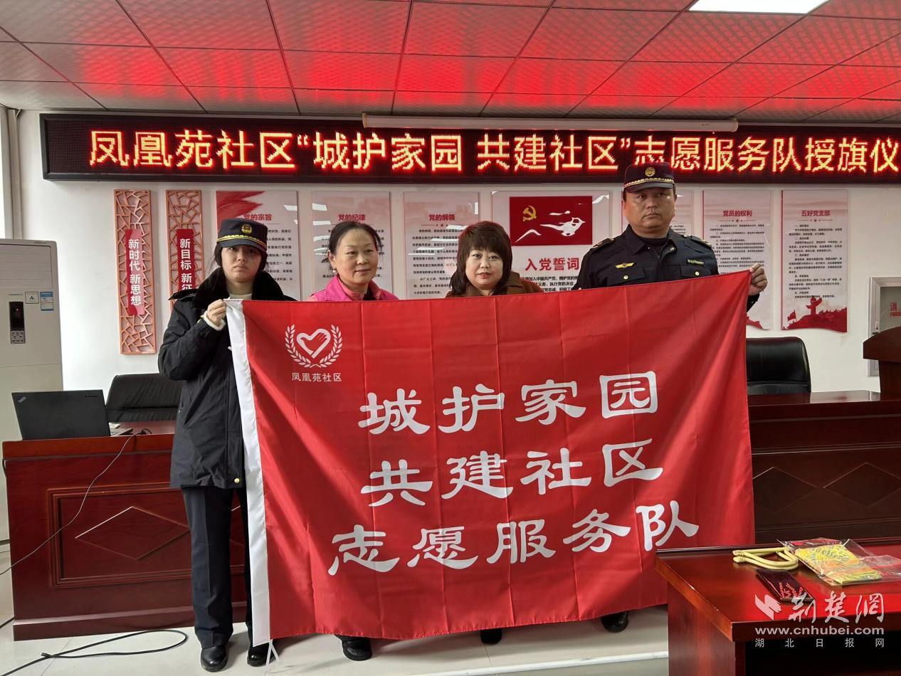 現(xiàn)場(chǎng)為“城護(hù)家園 共建社區(qū)”志愿服務(wù)隊(duì)授旗。通訊員供圖