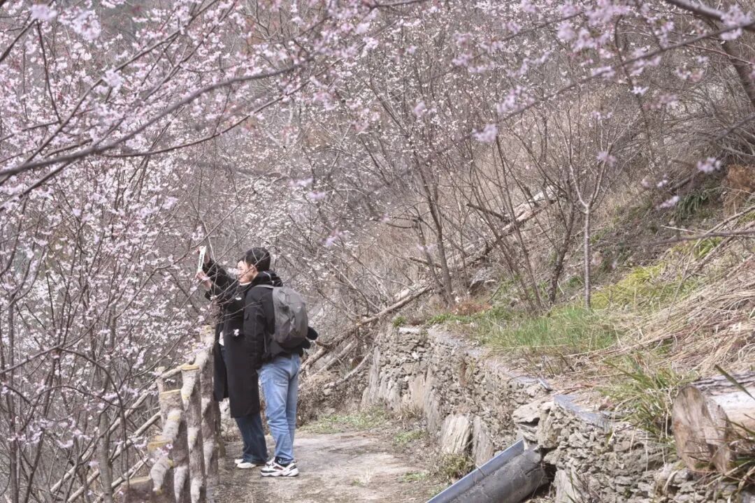步入景區(qū),綿延道路兩側(cè)櫻花成廊,花枝交錯(cuò)如云似霞。層層花瓣在陽(yáng)光下熠熠生輝,粉白相間、隨風(fēng)輕搖,勾勒出如夢(mèng)似幻的春日盛景。游客們漫步其間,拍照打卡、駐足欣賞,在山野間沉浸式感受櫻花與春光的雙重浪漫。