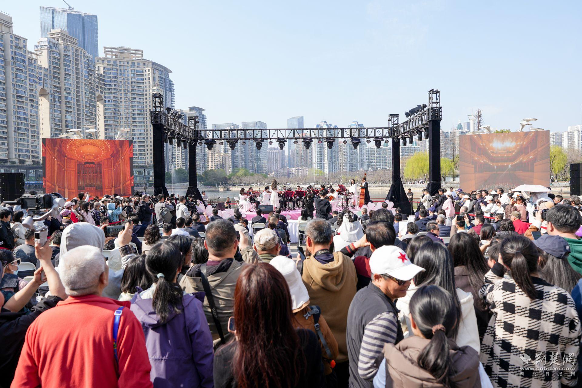 啟動(dòng)儀式當(dāng)天,西北湖廣場(chǎng)櫻花初綻。伴隨著武漢愛(ài)樂(lè)樂(lè)團(tuán)悠揚(yáng)的樂(lè)聲,2026江漢區(qū)賞櫻藝術(shù)季正式開(kāi)啟。現(xiàn)場(chǎng)不僅能圍觀陳銘有趣的春日漫談,還能看到上海歌舞團(tuán)藝術(shù)總監(jiān)、國(guó)家一級(jí)演員朱潔靜將帶來(lái)群舞演出,在櫻花掩映間呈現(xiàn)一場(chǎng)藝術(shù)盛宴。