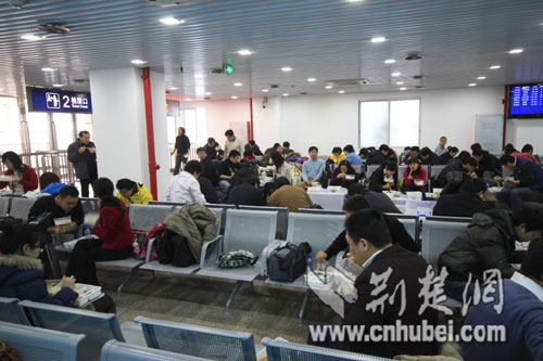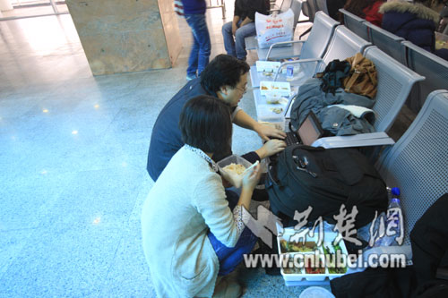 媒體記者們中午在廣州北站候車廳休息(荊楚網特約記者周志浩攝影)