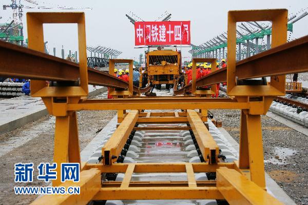 資料圖片:7月17日,中國鐵建十四局集團(tuán)京滬高鐵鋪軌工班的工人們正在鋪設(shè)通道,為正式鋪軌進(jìn)行準(zhǔn)備。京滬高鐵先導(dǎo)試驗段北段將于7月19日開始率先從徐州向蚌埠鋪軌,南段將于8月中旬從南京向蚌埠鋪軌,10月底將完成試驗段鋪軌。京滬高速鐵路全長1318公里,全線縱貫京津滬三大直轄市和河北、山東、安徽、江蘇四省,是我國目前最長的客運專線之一。新華社發(fā)(劉文攝)