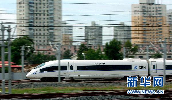 這是我國第一條擁有完全自主知識產權、具備世界一流水平的城際高速鐵路——京津城際高速鐵路的列車從北京南站駛出(2008年8月1日攝)。新華社記者公磊攝