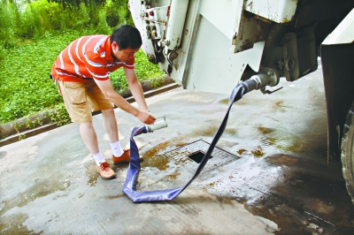 工人師傅說,改裝后,每輛車可以排出至少70%的水分。今后轉(zhuǎn)運垃圾時,就近找個下水道,可將垃圾擠干后再運,不僅解決隨地“大小便”問題,還能增加運輸量,一舉多得。